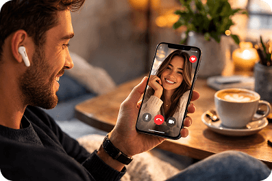 Datemil's in-app video and voice call features allow you to move beyond messaging — without sharing personal phone numbers, social media, or private contact details.